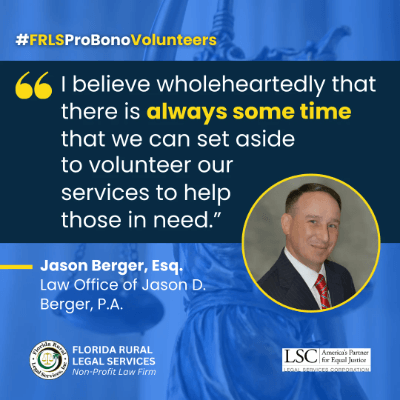 Florida Rural Legal Services is seeking Pro Bono attorneys to lend their expertise and support to our legal aid efforts. By volunteering your time and skills on one Pro Bono case per quarter, you can help us provide crucial legal assistance to those in need across our communities.